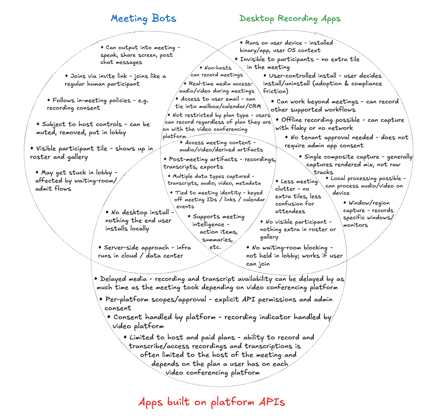 These constraints don’t make meeting bots bad. After all, every form factor has tradeoffs. These are simply the things you should be aware of before choosing which approach fits your use case.
