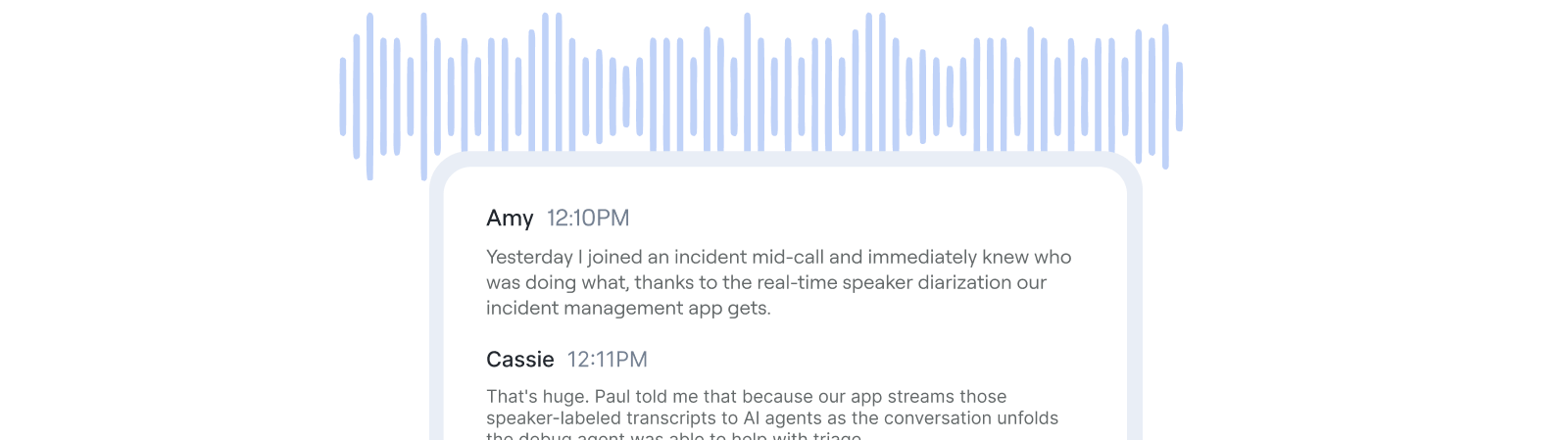 Get transcripts in real-time or async from your preferred transcription engine with accurate speaker attribution across conversations.